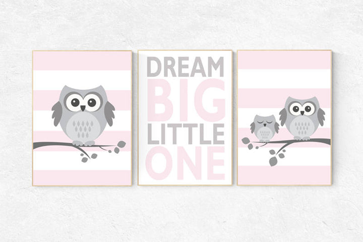 Owl nursery wall art, dream big little one, baby girl room decor, Pink nursery decor, owl nursery decor, baby girl nursery decor, new baby