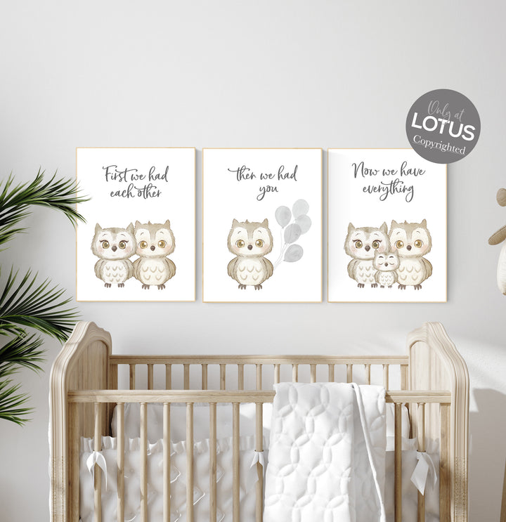 Owl nursery wall art, grey nursery, first we had each other then we had you, gender neutral nursery, owl prints for nursery, owl wall art