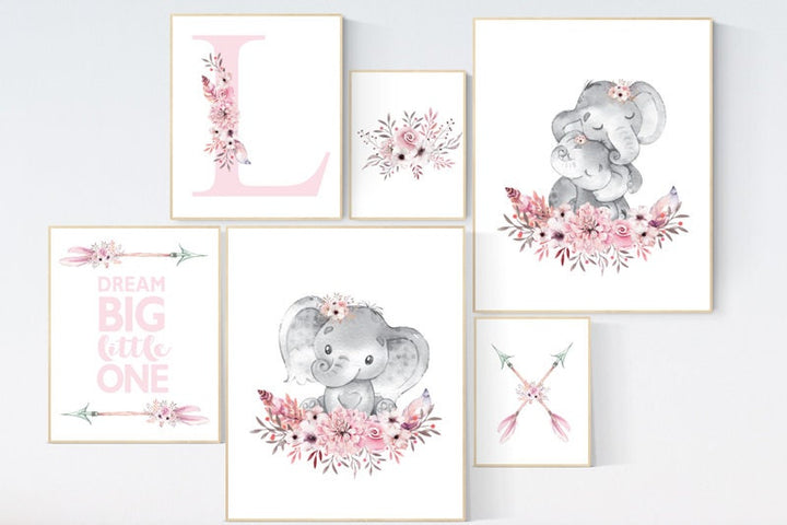 Boho nursery decor girl, elephant nursery decor girl, nursery decor girl name, nursery decor girl flower, pink nursery print, arrow, flower