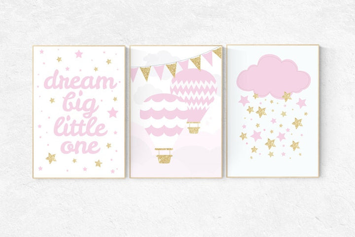 Pink gold nursery, dream big little one, pink and gold nursery, hot air balloon nursery, nursery decor girl pink, girls room decor pink gold