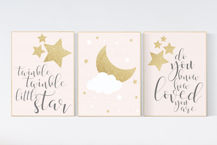 Pink gold nursery art, blush pink nursery decor, blush pink and gold, girls room wall decor, twinkle twinkle little star