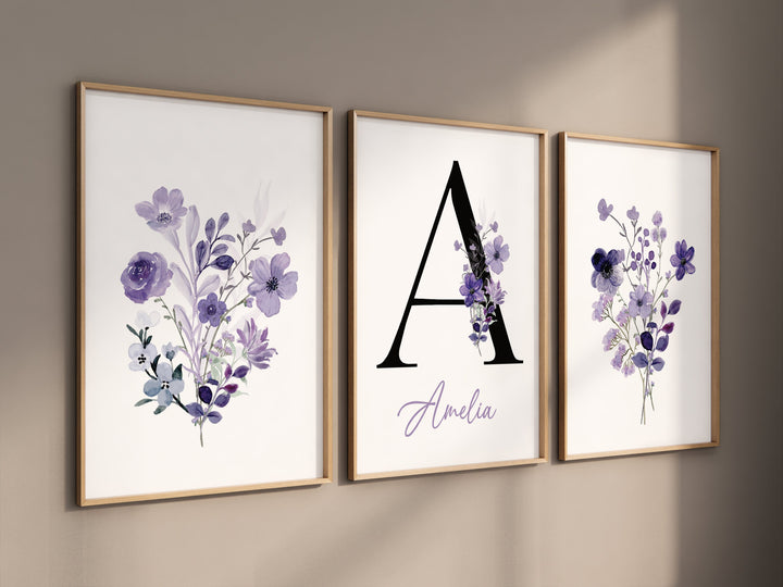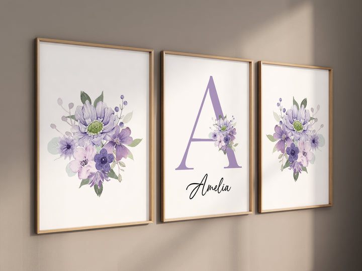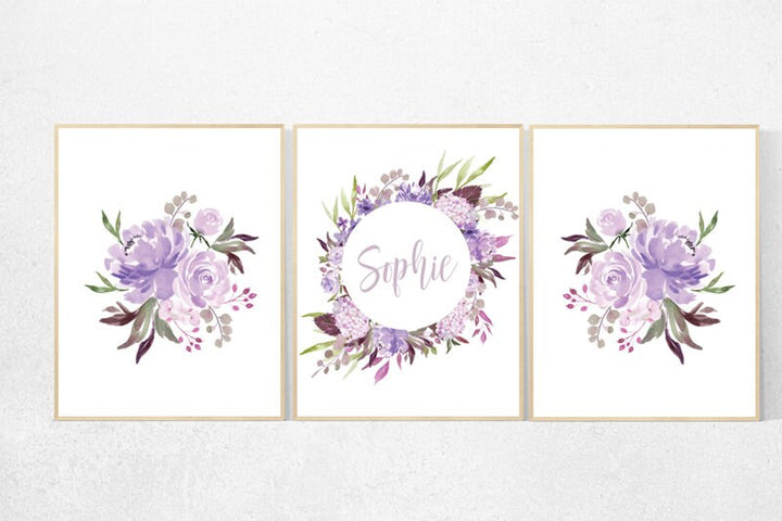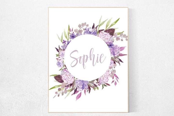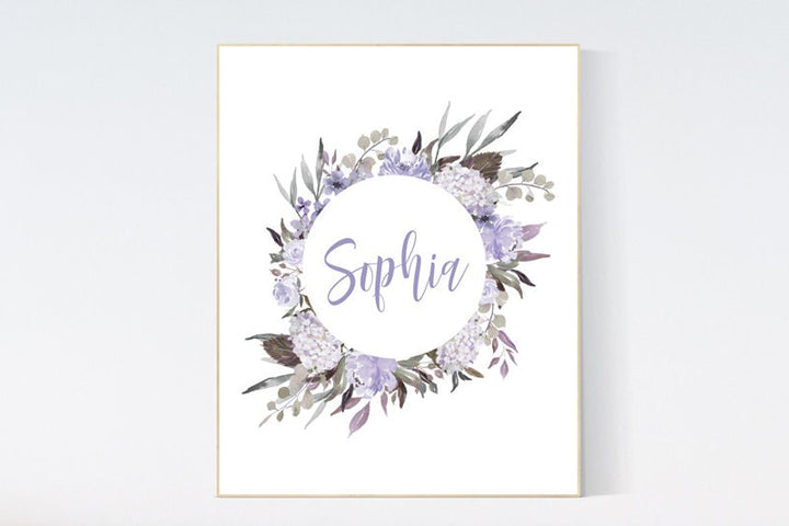 Purple flower nursery decor, Nursery decor girl purple, nursery decor girl name, lavender nursery, lilac nursery, girls room decor purple