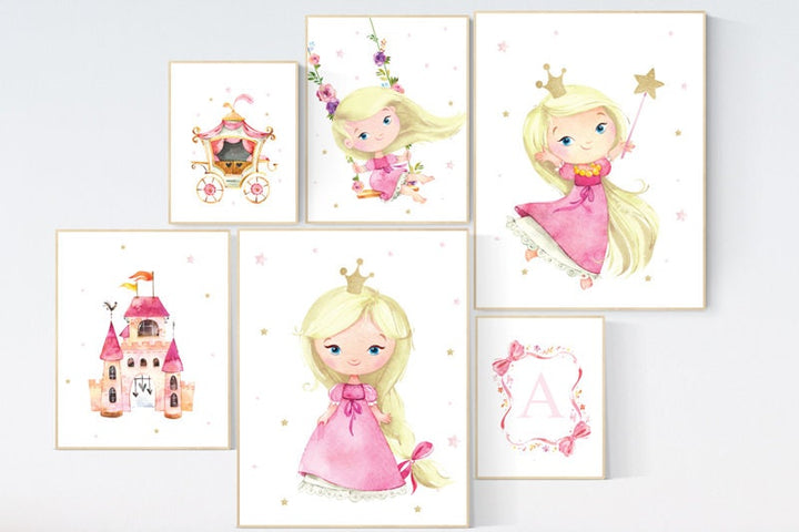 Princess nursery wall art, princess room decor for girls, baby girl nursery prints, girl room wall prints, girls room wall decor, pink