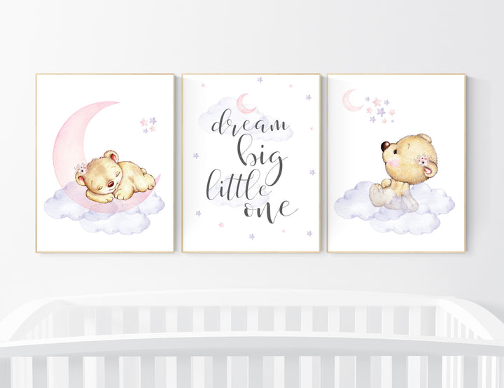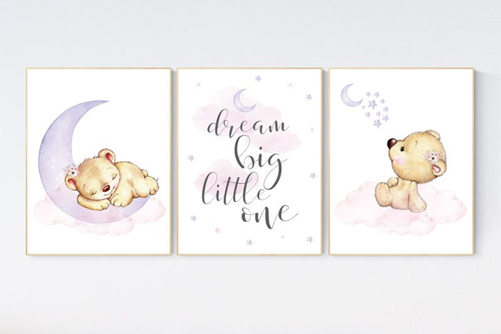 Purple and pink, Nursery decor girl bear, lavender, nursery decor girl pink and purple, animal nursery, teddy bear, nursery wall decor