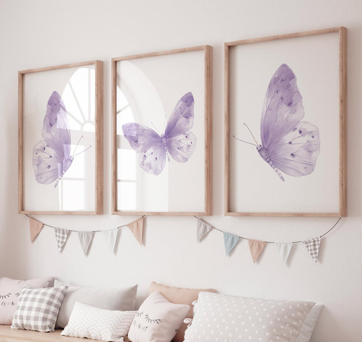 Purple Butterfly Nursery Art Prints: Boho Watercolor Set of 3