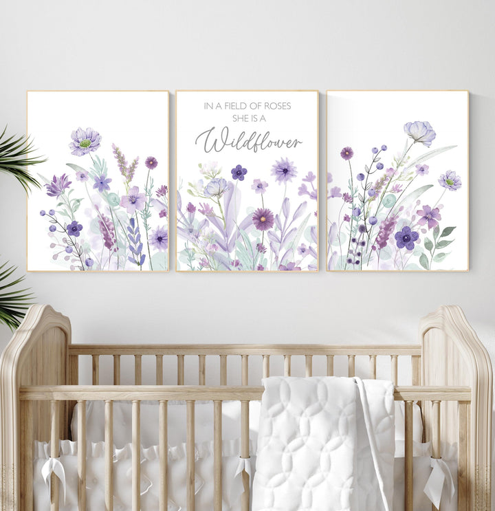 Purple flower nursery decor, wildflower nursery, girls room decor, Nursery decor girl purple, lavender nursery, lilac nursery, girls room