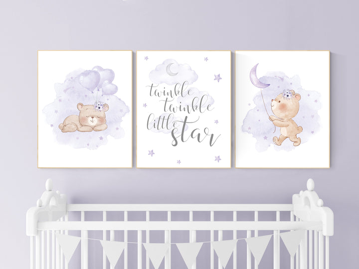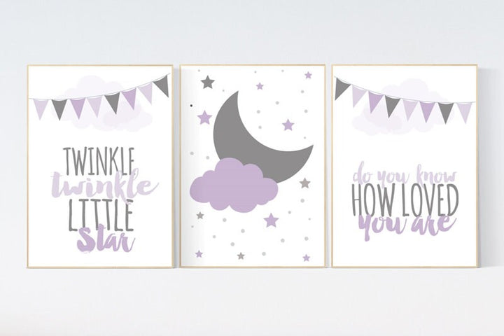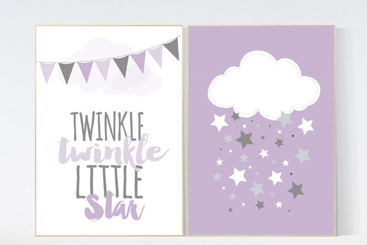 Purple nursery decor, Twinkle Twinkle Little Star, baby girl nursery wall art, new baby gift, purple gray nursery, cloud Nursery Art