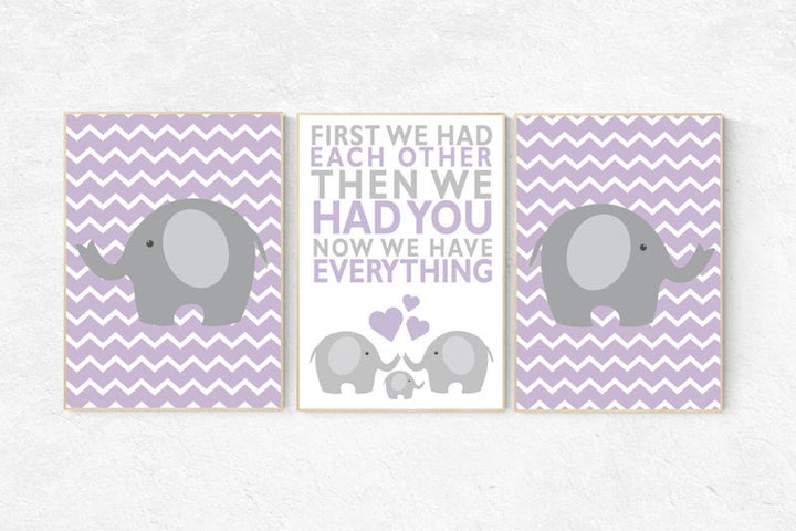 Purple nursery decor, nursery decor girl lavender, elephant nursery, First We Had Each Other, girls room, Nursery Art, lilac nursery, purple