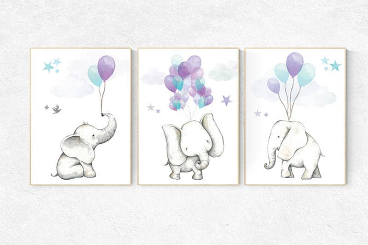 Purple mint nursery decor, nursery decor elephant, animal prints, elephant baby room, lavender mint nursery, lilac nursery, animal nursery