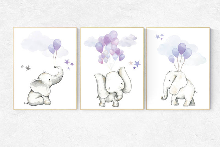 Purple nursery decor, lavender nursery decor elephant, animal prints, nursery decor girl elephant, baby room, nursery decor lavender, lilac