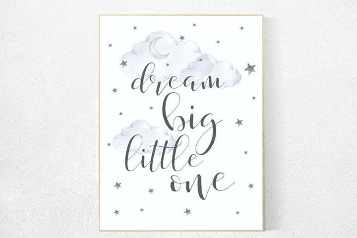 Purple nursery decor, baby girl nursery, lilac gray nursery, dream big little one, girls room decor, star nursery decor girl, lavender