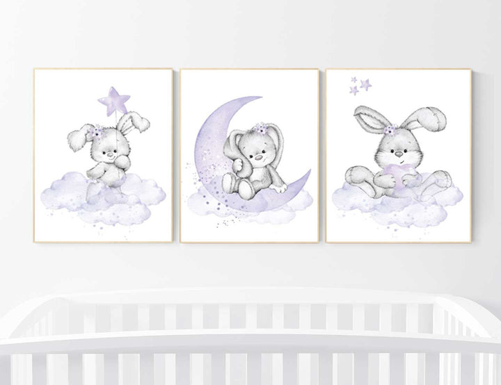 Purple nursery decor, Nursery wall art bunny, Nursery decor girl flower bunny, lilac, lavender, bunny print nursery girl, rabbit print