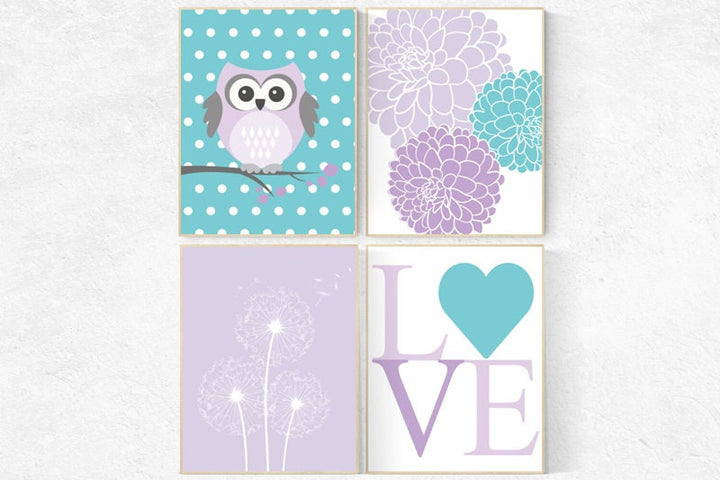 Purple teal nursery, girls room decor purple, lavender teal owl, owl nursery, owl nursery girl, purple teal decor, purple teal wall art
