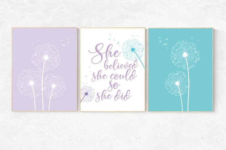 Purple teal nursery, she believed she could so she did, girls room decor purple, purple teal decor, lavender teal, nursery decor girls