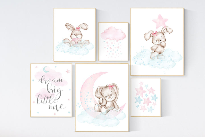 Rabbit nursery print, nursery print set girl, pink, watercolor bunny nursery print, Nursery decor girl bunny, Nursery wall art girl,