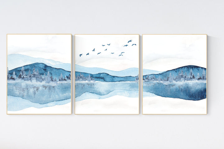 River nursery theme, forest view, landscape nursery, tree nursery decor, blue nursery, woodland nursery decor, river view, waterfall