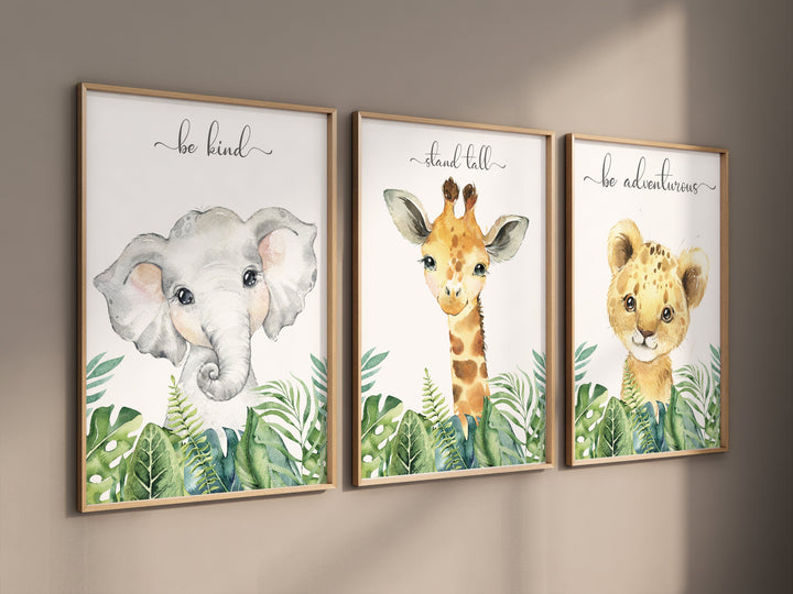Safari Animal Nursery Prints: Boho Jungle Art, Set of 3