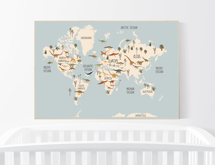 Safari animals nursery, Animal World Map, Map of the World, Playroom decor, Nursery world map, animal map, gender neutral, large size
