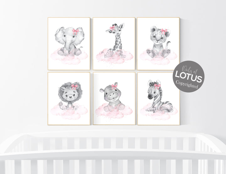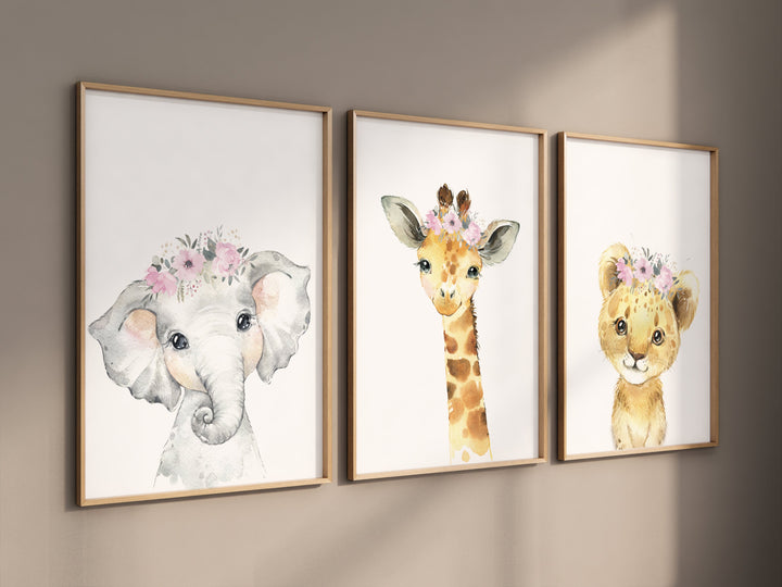 Safari animals, girl nursery decor, safari nursery decor, animal prints for nursery, woodland nursery decor, baby room decor, girls nursery