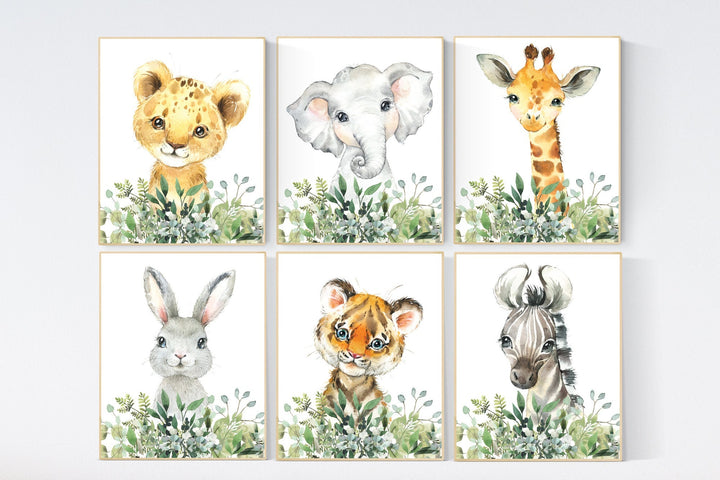Safari animal wall art set, Animal Prints, Animal Nursery wall art, safari animals, animal Nursery Decor, gender neutral nursery, baby room