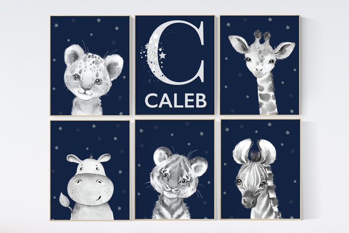 Safari animals nursery prints, navy nursery wall art, animal prints, navy nursery, navy blue nursery, baby room wall art, woodland animals