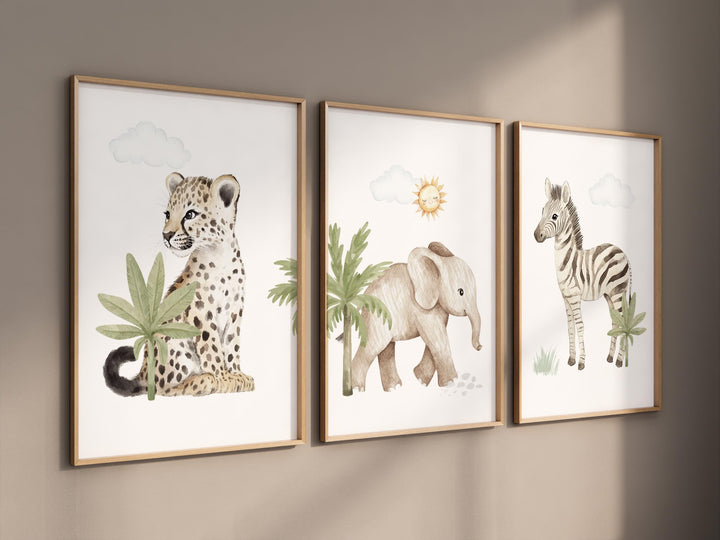 Safari Animal Nursery Wall Art Set – Elephant, Zebra, Cheetah Jungle Prints – Gender Neutral Baby Room Decor, Safari Baby Wall Art