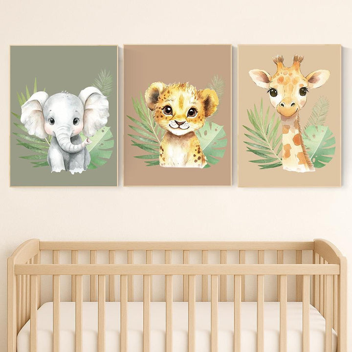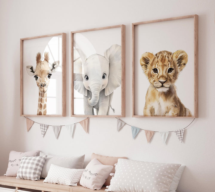 Safari Baby Animal Nursery Wall Art, Giraffe Elephant Lion Prints, Jungle Animal Decor, Gender Neutral Baby Room Wall Set, animal prints