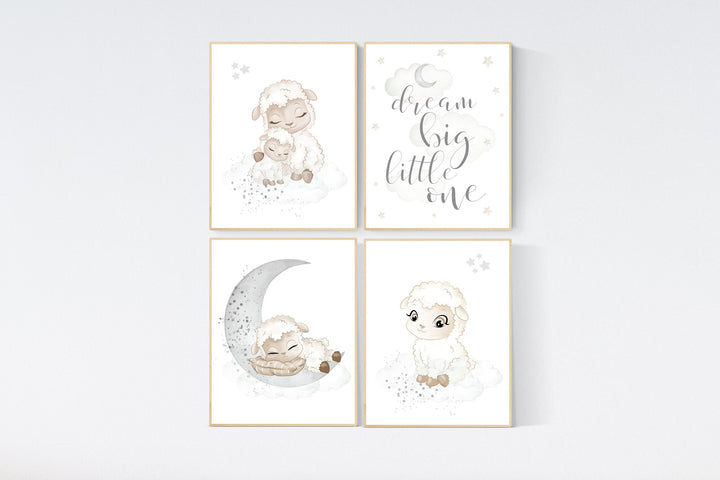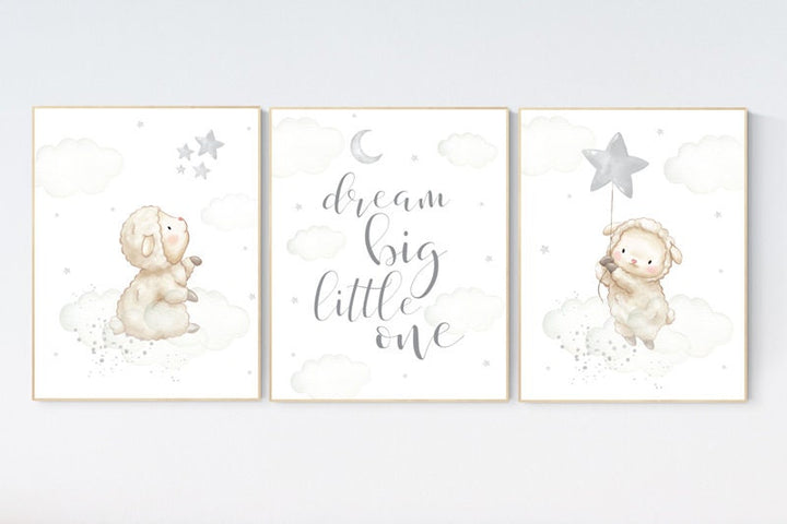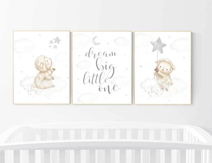 Sheep and giraffe nursery decor, Gray nursery decor, nursery decor lambs, nursery wall art sheep, dream big little one, animal nursery