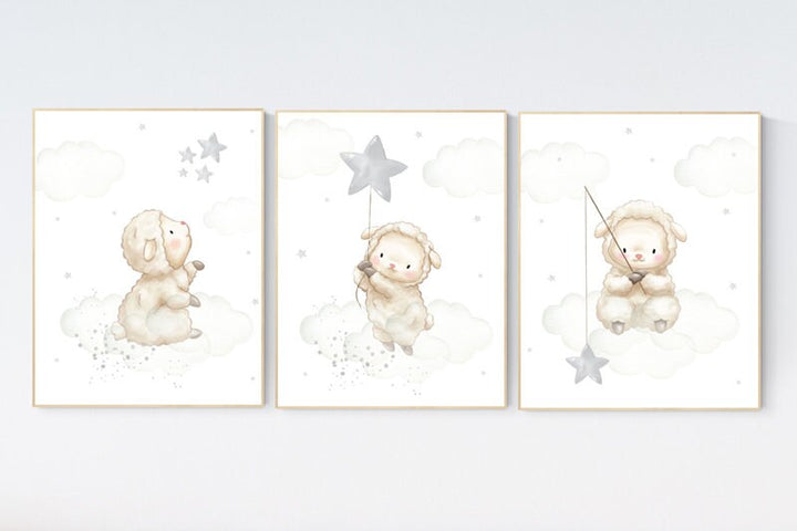 Sheep nursery decor, gender neutral nursery, lambs nursery decor, nursery wall art sheep, nursery wall art, baby room prints, neutral