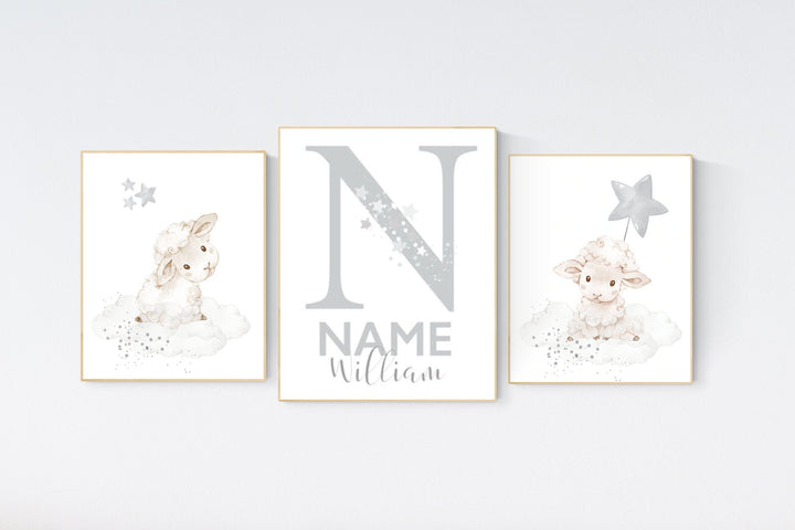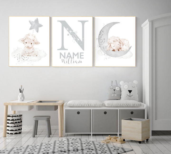 Sheep nursery decor, Gray nursery decor, nursery decor lamb, nursery wall art sheep, gender neutral nursery, grey nursery, baby room prints