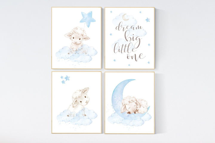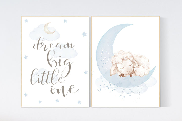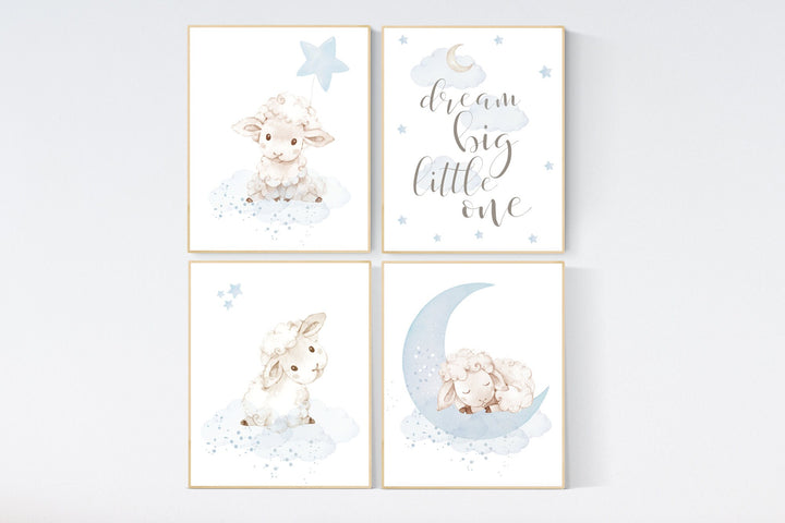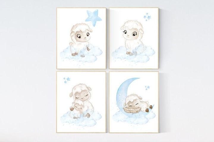 Sheep nursery decor, blue grey nursery, nursery decor lambs, nursery wall art sheep, moon and cloud wall art nursery, gray blue, nursery art