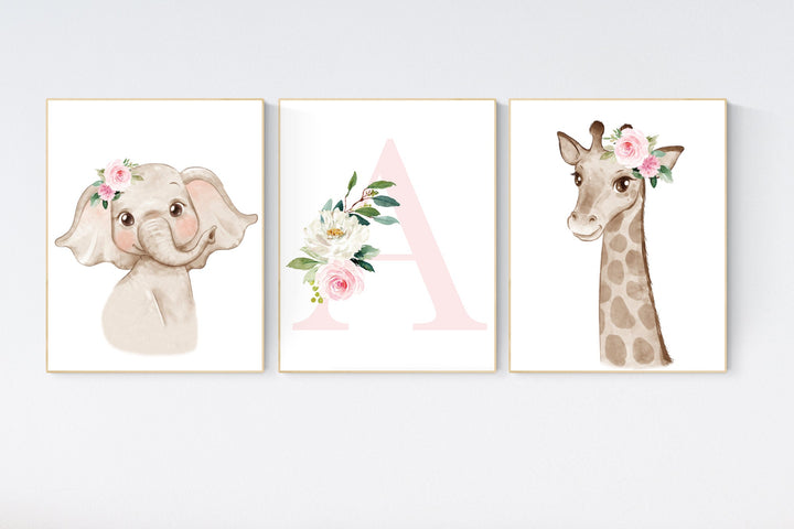 Set of 3 Safari Floral Animals, Nursery Prints, Nursery Decor, Girls Nursery Decor, Safari Nursery, jungle animals, Woodland Prints