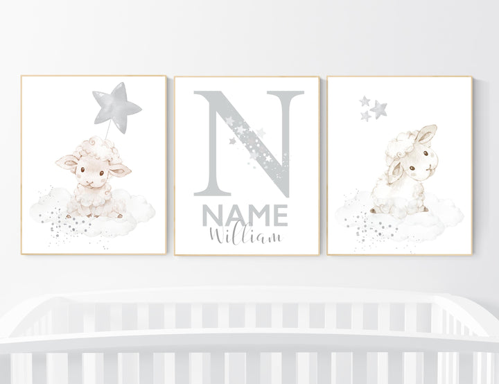 Sheep nursery decor, Gray nursery decor, nursery decor lambs, gender neutral nursery
