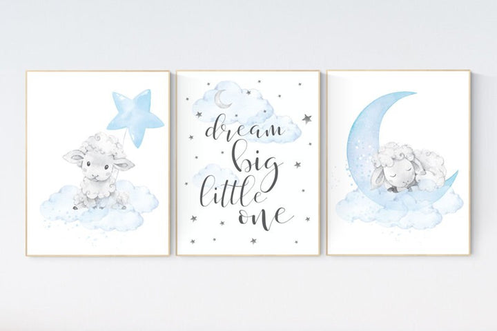 Sheep nursery decor, Nursery decor boy, nursery decor lambs, nursery wall art sheep, moon and cloud wall art nursery, boy nursery decor