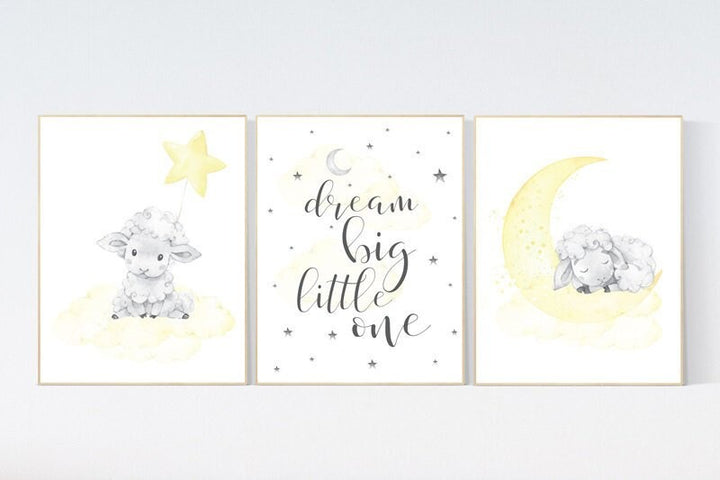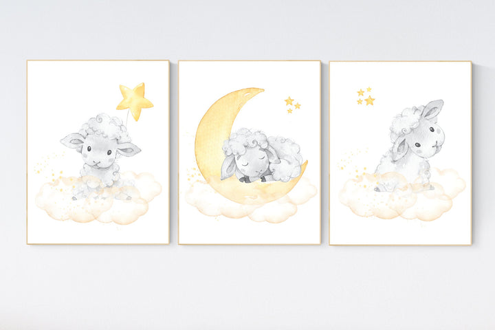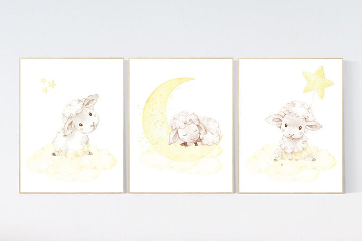 Sheep nursery decor, yellow nursery decor, nursery decor lambs, nursery wall art sheep, moon and cloud wall art nursery gender neutral