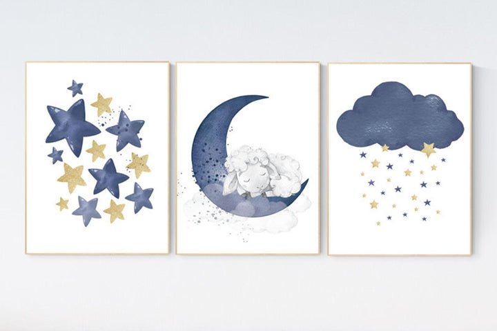 Sheep nursery decor, Nursery decor boy, nursery decor lambs, nursery wall art sheep, moon and cloud wall art nursery, navy gold nursery