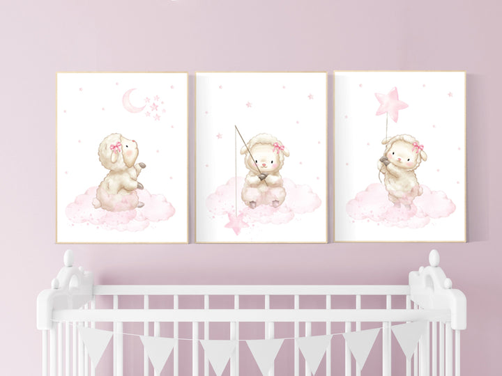 Sheep nursery decor, Nursery decor girl, nursery decor lambs, nursery wall art sheep, moon and cloud wall art nursery, girl nursery decor