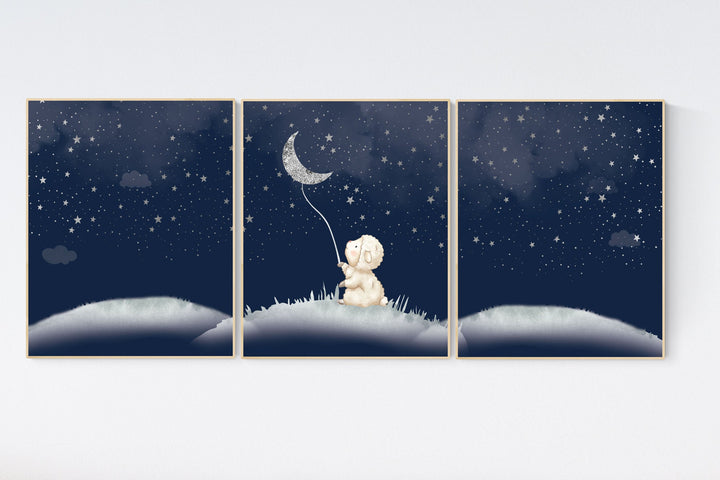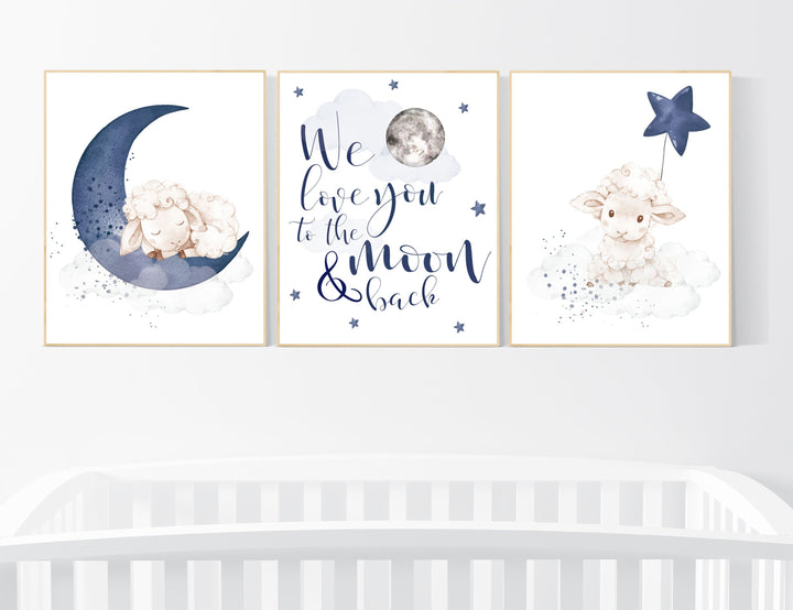 Sheep nursery decor, Nursery decor boy, nursery decor lambs, nursery wall art sheep, moon and cloud wall art nursery, navy nursery wall art