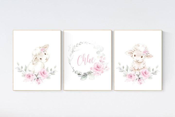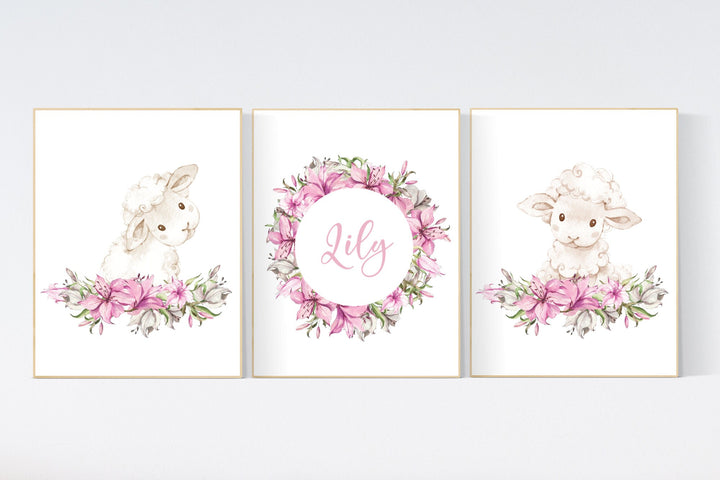 Sheep nursery decor, Nursery decor girl pink, nursery decor lambs, nursery wall art sheep, flower nursery wall art nursery, girl nursery
