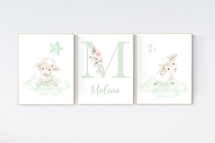Sheep nursery decor, lamb nursery, green nursery, girl nursery decor, Sheep nursery decor, cloud and star, name nursery, sheep prints
