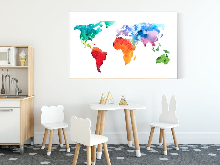 Travel theme nursery, World Map Print, nursery wall art, gender neutral, world map wall art, map nursery, baby room decor, color world map