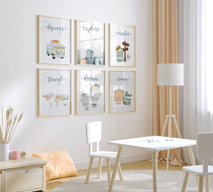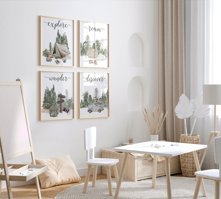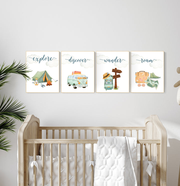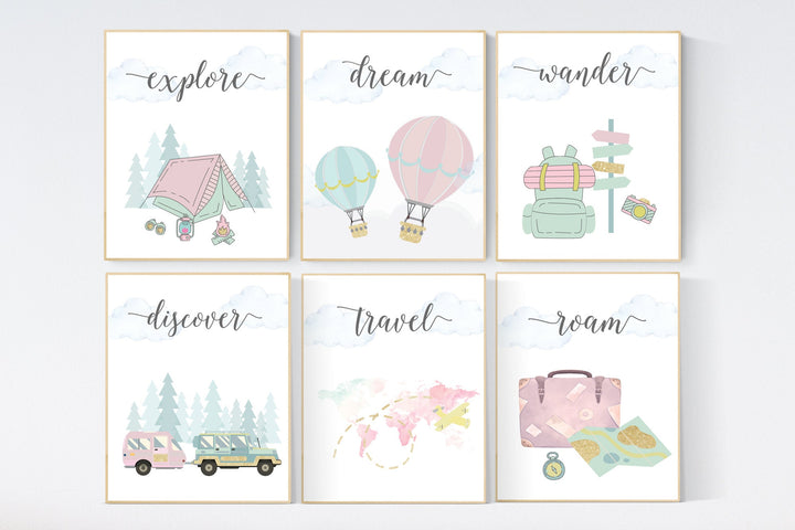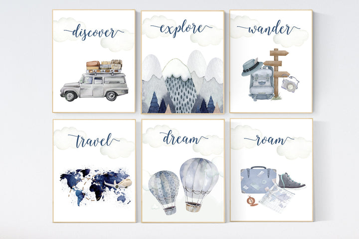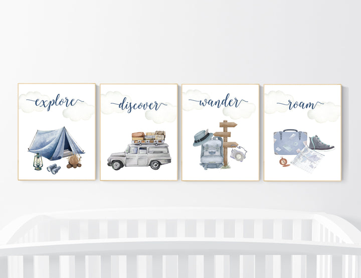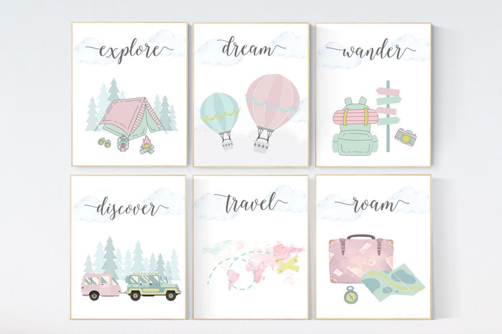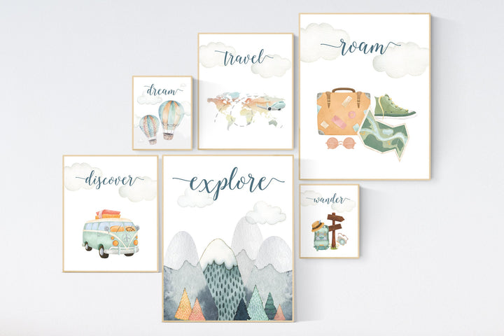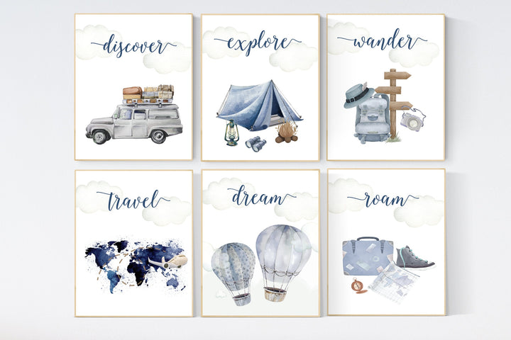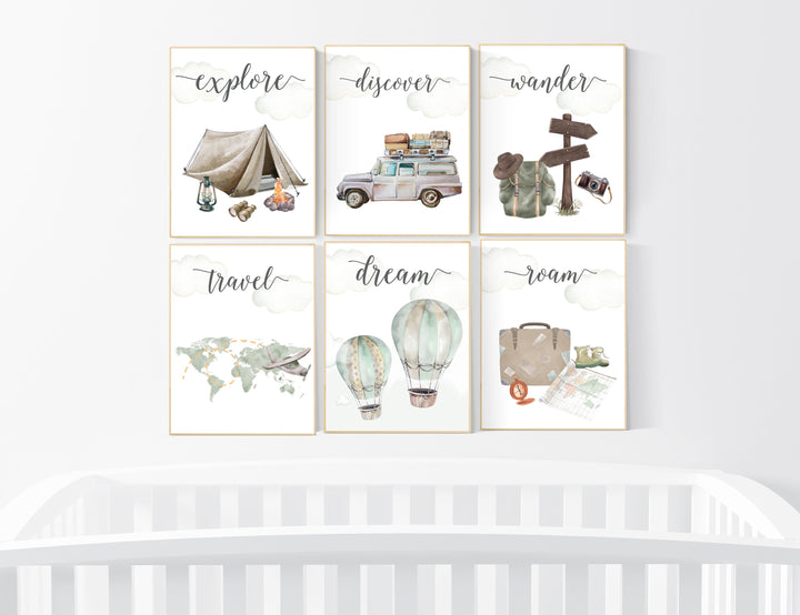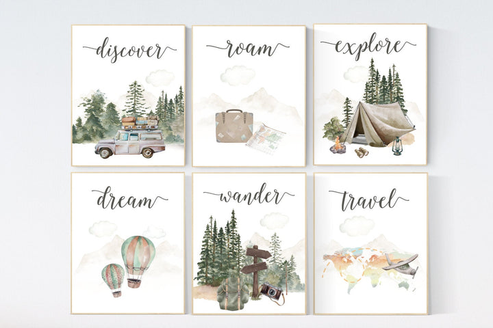 Travel nursery print, Explore nursery wall art, Baby boy nursery, Adventure Set of 6 prints, Camping Prints, Adventure Nursery Decor
