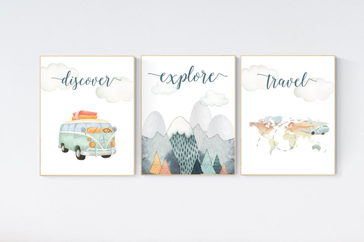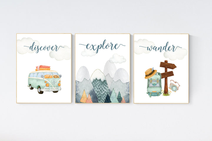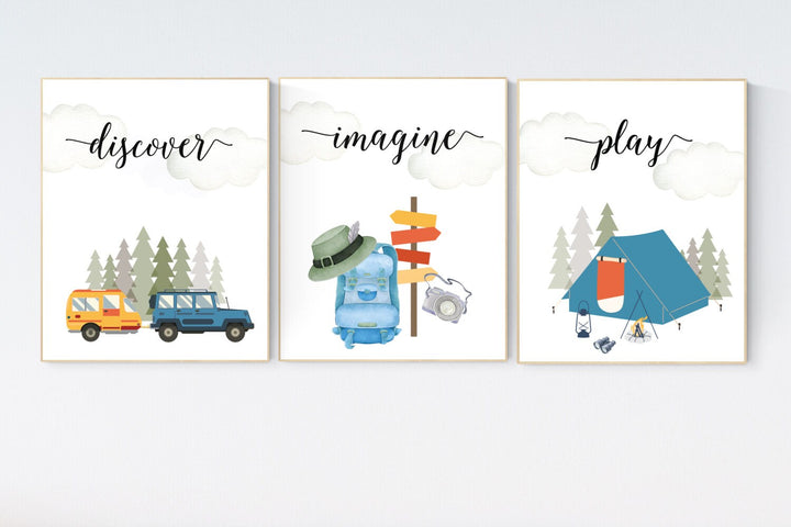 Travel nursery print, Explore nursery wall art, Baby boy nursery, Adventure Set of 3 prints, Camping Prints, Adventure Nursery Decor