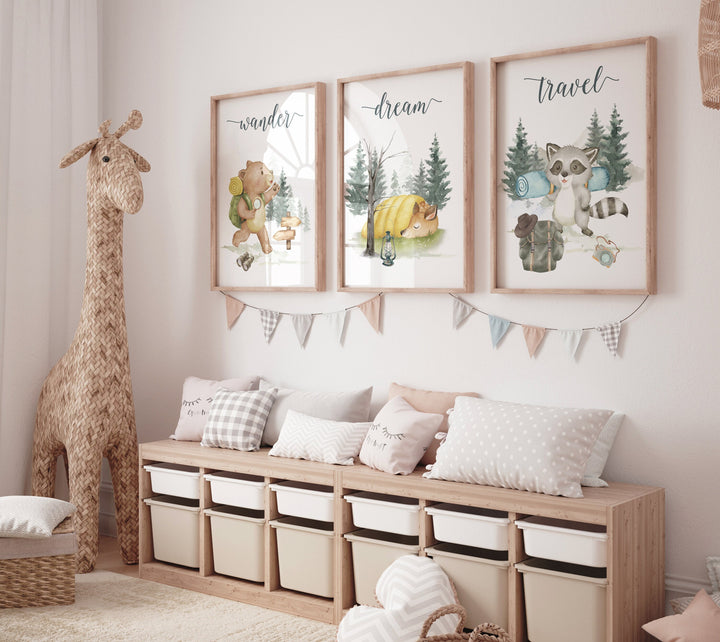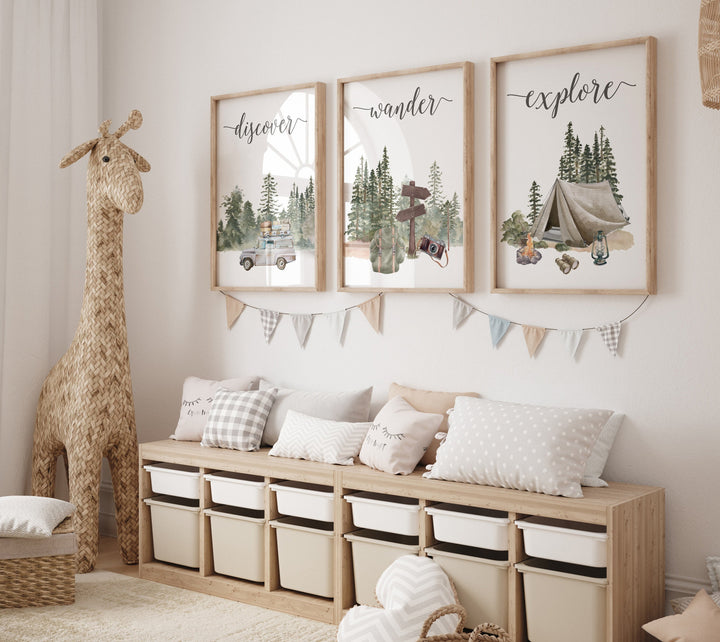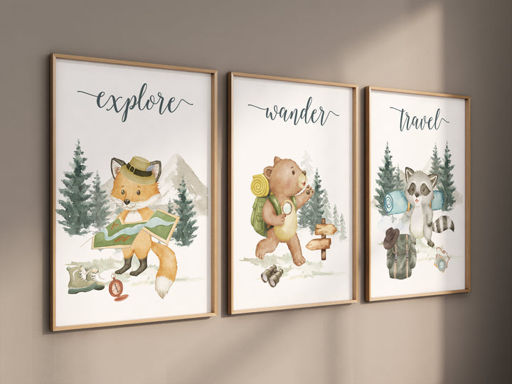 Travel nursery print, Explore nursery wall art, baby nursery room, Adventure Set of 3 prints, Camping Prints, Adventure Nursery Decor