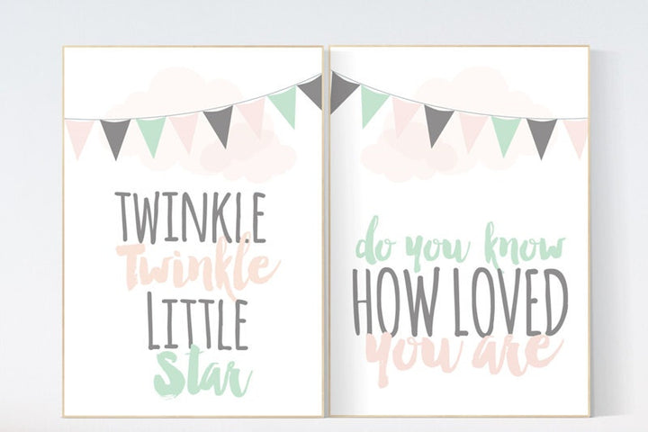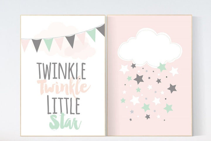 Twinkle Twinkle Little Star, nursery decor, Baby girl nursery decor, coral mint nursery decor, girls room wall art baby room prints new baby