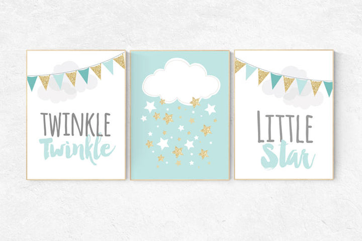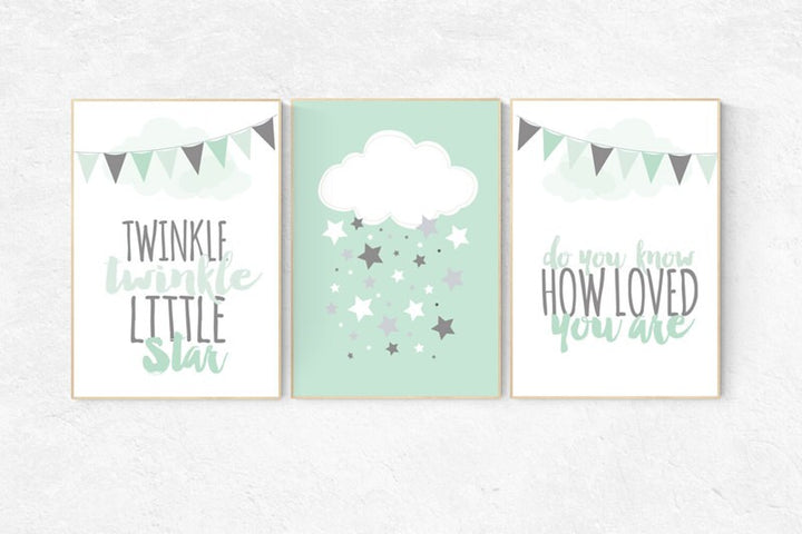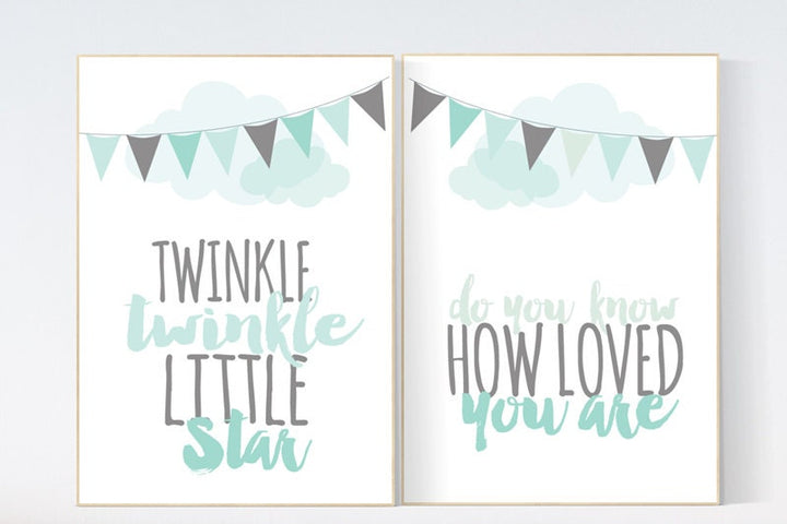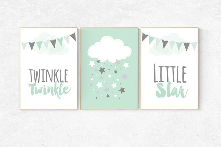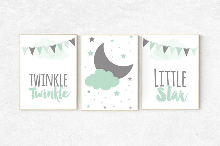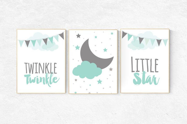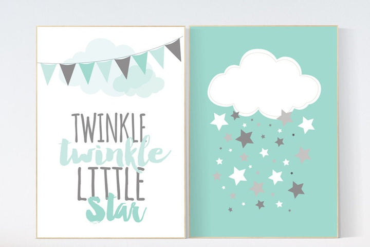 Twinkle Twinkle Little Star, Mint nursery decor, cloud nursery, gender neutral baby, Baby Boy Nursery Wall Art, mint gray, mint gray nursery