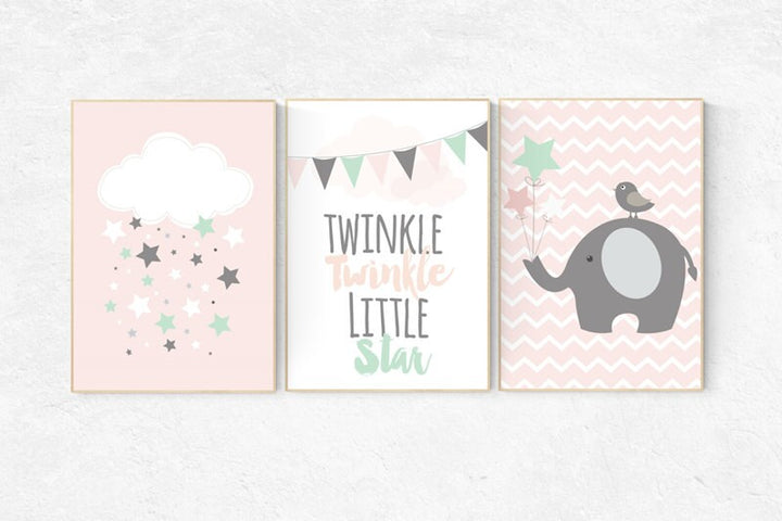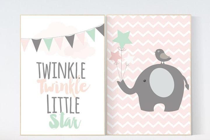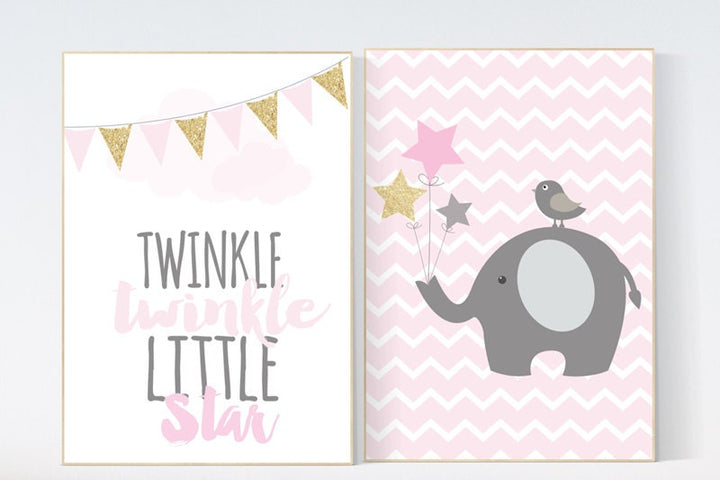 Twinkle Twinkle Little Star, Elephant nursery decor, pink gold nursery, Baby girl nursery decor, girls room wall art baby girl nursery girls