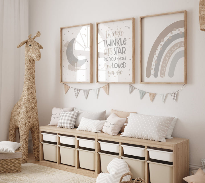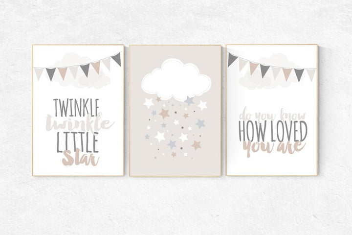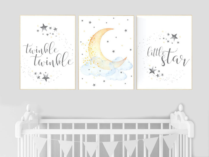 Twinkle twinkle little star, nursery decor neutral, cloud and stars, baby room art, moon nursery