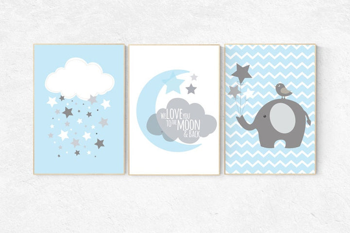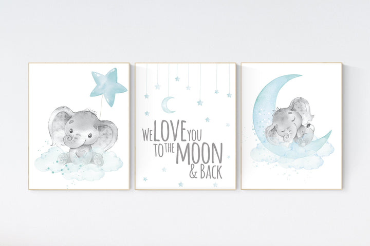 We love you to the moon and back, nursery decor, blue nursery decor, moon nursery, elephant nursery, nursery wall art, baby room decor, gift
