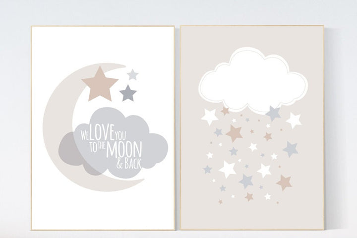 We love you to the moon and back, gender neutral nursery, beige and cream, cloud Nursery Nursery Decor Gray Beige gender neutral baby shower